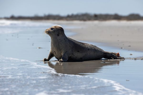 On March 7th we received a call for a large adult male Harp seal hauled out on Brant Beach, Long Beach Island, NJ. The seal's behavior on the beach was observed for 24 hours by MMSC staff and certified Stranding Volunteers local to the area. When evaluating a Harp seal’s behavior, something we watch for is substrate eating. As an Arctic species, Harp seals often consume snow and ice for fresh water. When they haul out on our beaches, sick, dehydrated and stressed Harp seals may start eating sand, confusing it for snow, putting them in danger of gastric impaction.